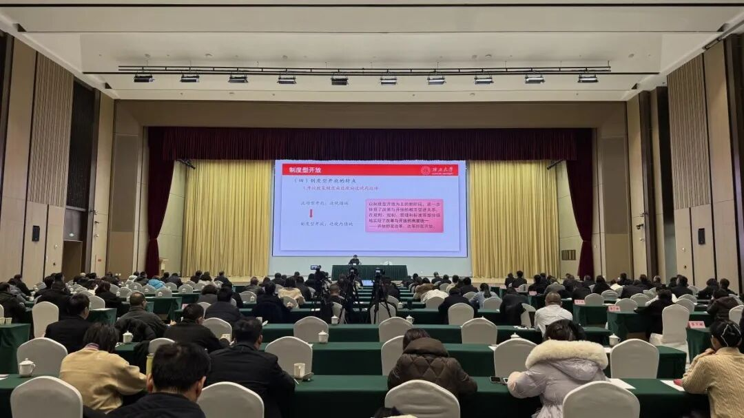 On January 30,2026, at the request of the People's Government of Neijiang Municipality, Academic Dean Li Guanghui delivered a thematic speech titled "Guided by Institutional Openness to Promote High-Quality Development of Neijiang's Open Economy." Leaders of the People’s Government of Neijiang Municipality including Zhang Yong, Ma Ju, and Jiang Wei attended the speech session. Vice Mayor Lan Xu presided over the event and delivered a remark.