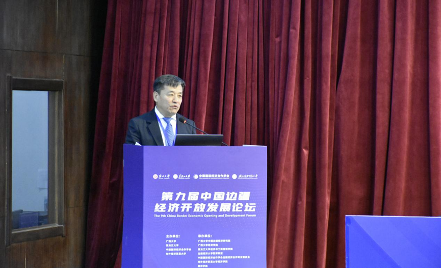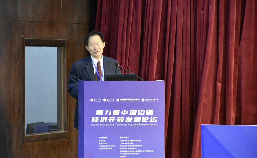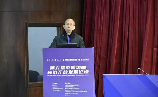 Li Guanghui, Dean of the Guangxi University China Border Economic Research Institute, delivers a keynote report