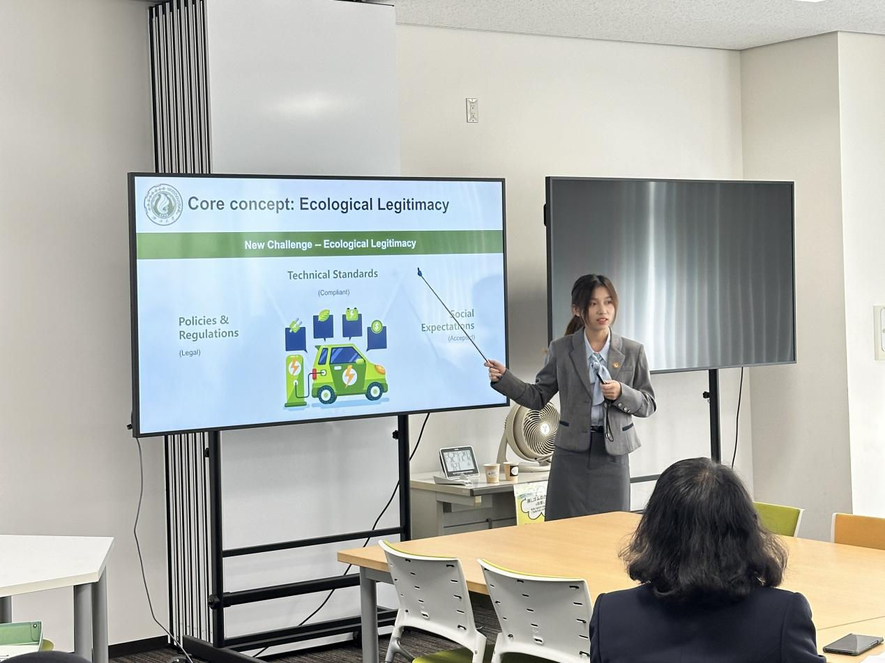 此次我校共派出13名学生代表参会。我院2024级国际商务专业硕士研究生欧阳璟璘凭借优异表现,经学院推荐、学校面试选拔脱颖而出,作为广西大学参会代表参与此次研讨会,并围绕会议“环境”议题,以《Carbon Border Barriers and ASEAN Market Adaptation: How Chinese Solar & Storage Firms Redefine Localization Strategies(碳边境壁垒与东盟市场适应:中国光伏与储能企业的本地化战略研究)》为题汇报了研究成果。