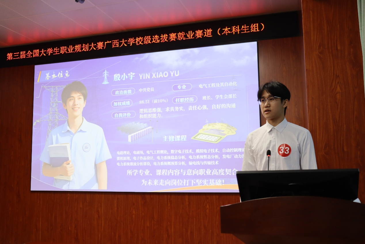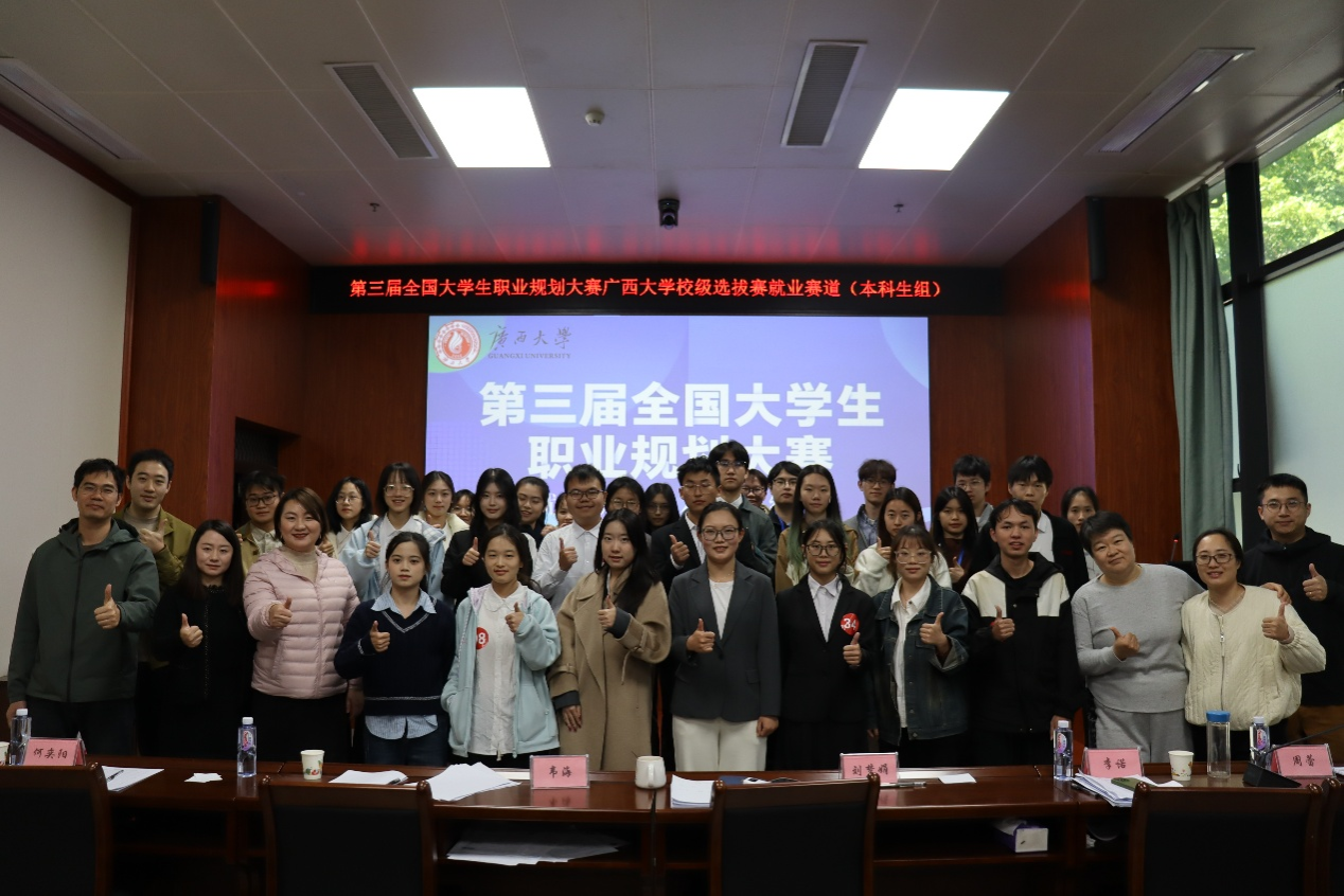 11月29日,第三届全国大学生职业规划大赛广西大学选拔赛就业赛道(本科生组)在经济学院B101报告厅圆满落幕。本次大赛以“以赛促学、以赛促教、以赛促就”为宗旨,引导学生树立正确的成才观、职业观与就业观,增强职业规划意识,提升就业竞争力,为实现毕业生高质量充分就业赋能助力。