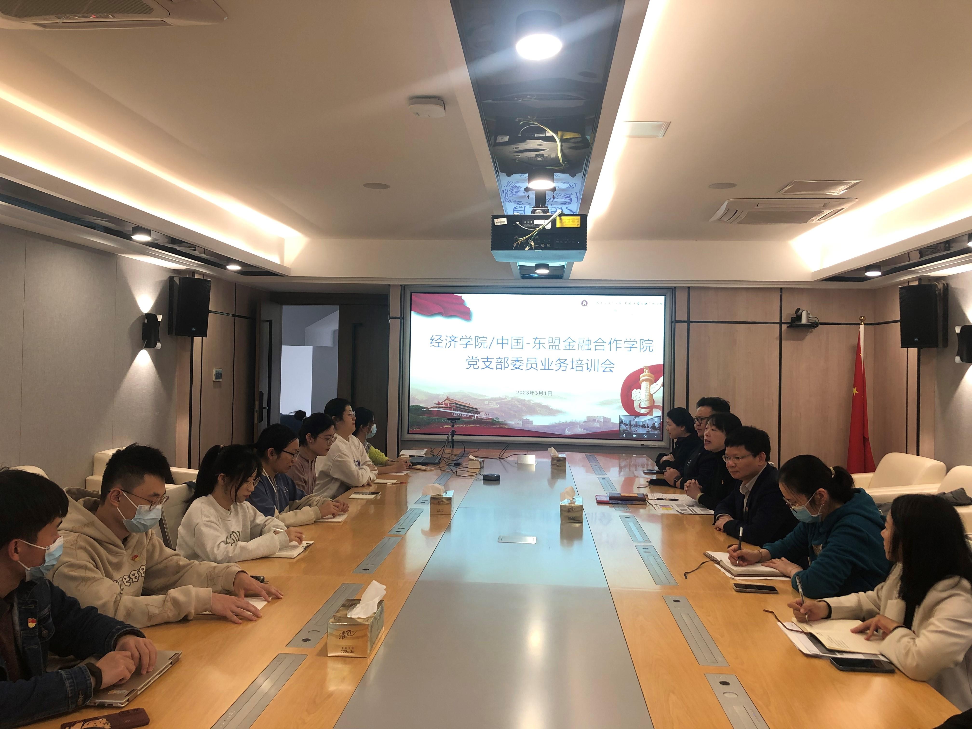 为促进基层党建工作标准化规范化,提高学生党支部委员的工作能力,充分发挥党支部的战斗堡垒作用,3月1日下午,经济学院/中国-东盟金融合作学院党委在学院102会议室召开学生党支部委员党建业务培训会。学院党委书记陆善勇、党委副书记陈卉娟、专职组织员刘莉莉、全体学生党支部委员及学生党建工作秘书处成员共40余人参加了此次培训,会议线上线下同时进行。