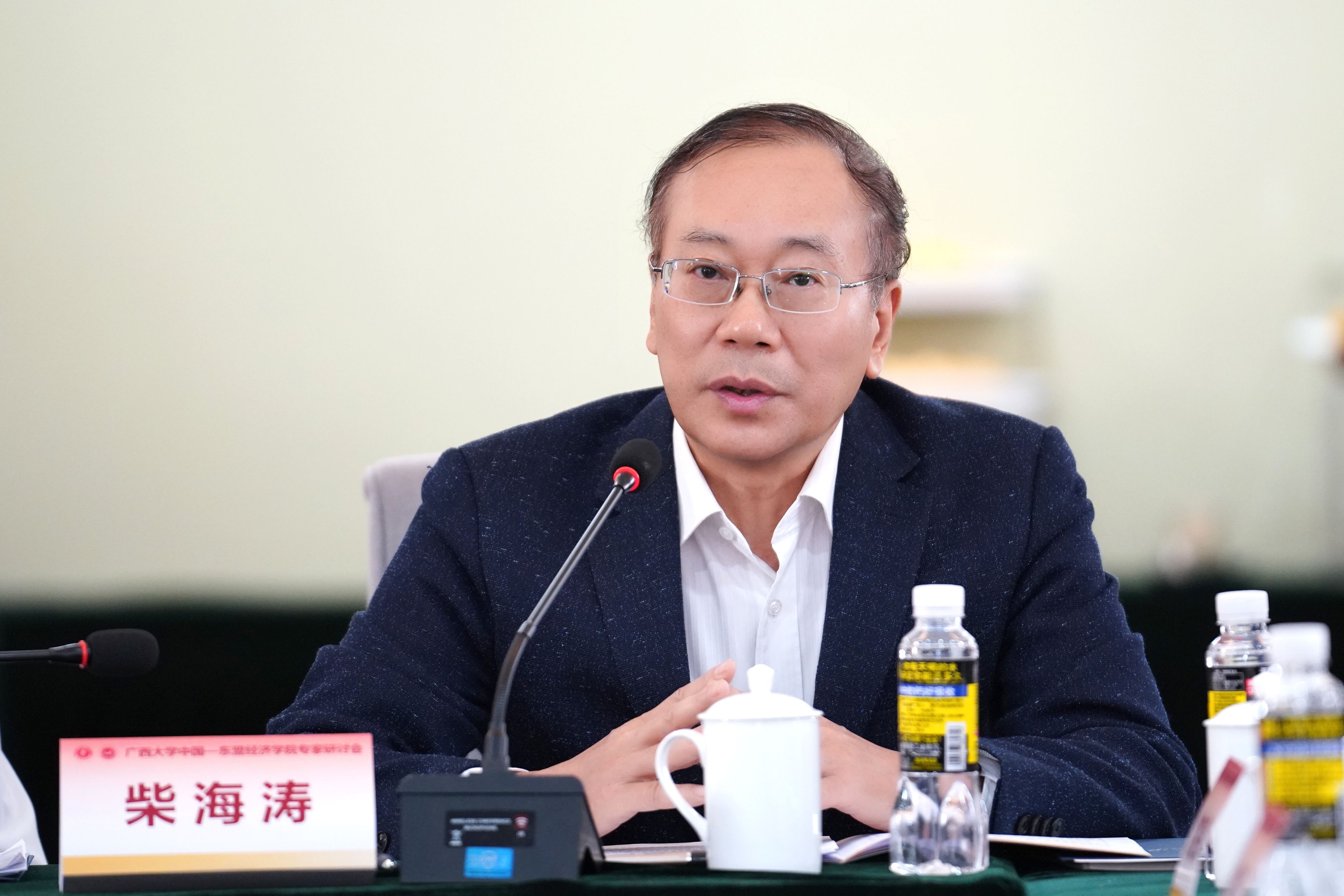 专家研讨环节由广西大学中国—东盟研究院执行院长梁运文主持。商务部研究院国家高端智库专家、原院长柴海涛作为专家代表进行发言。