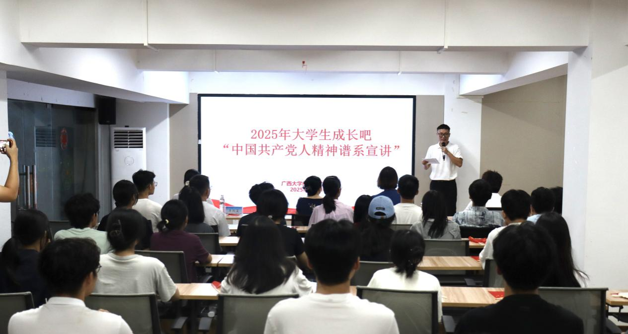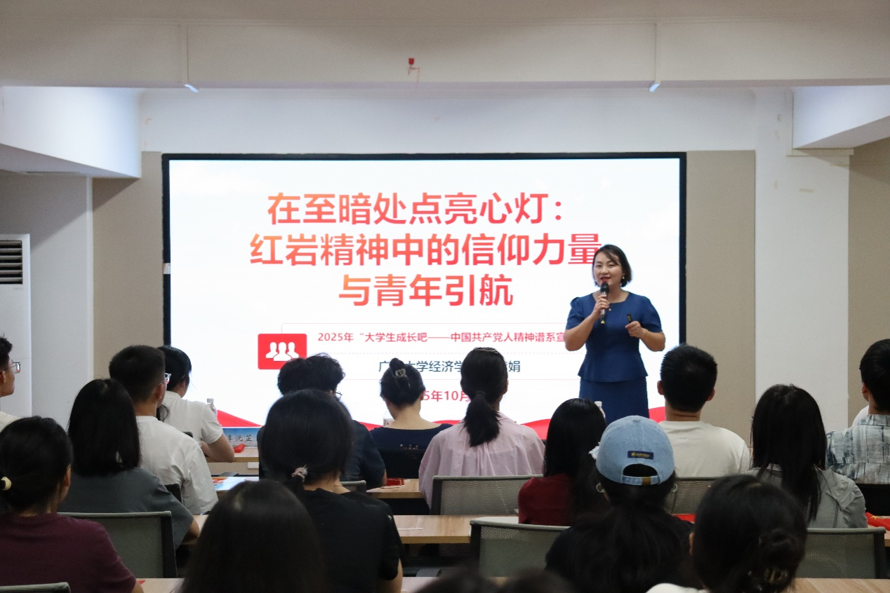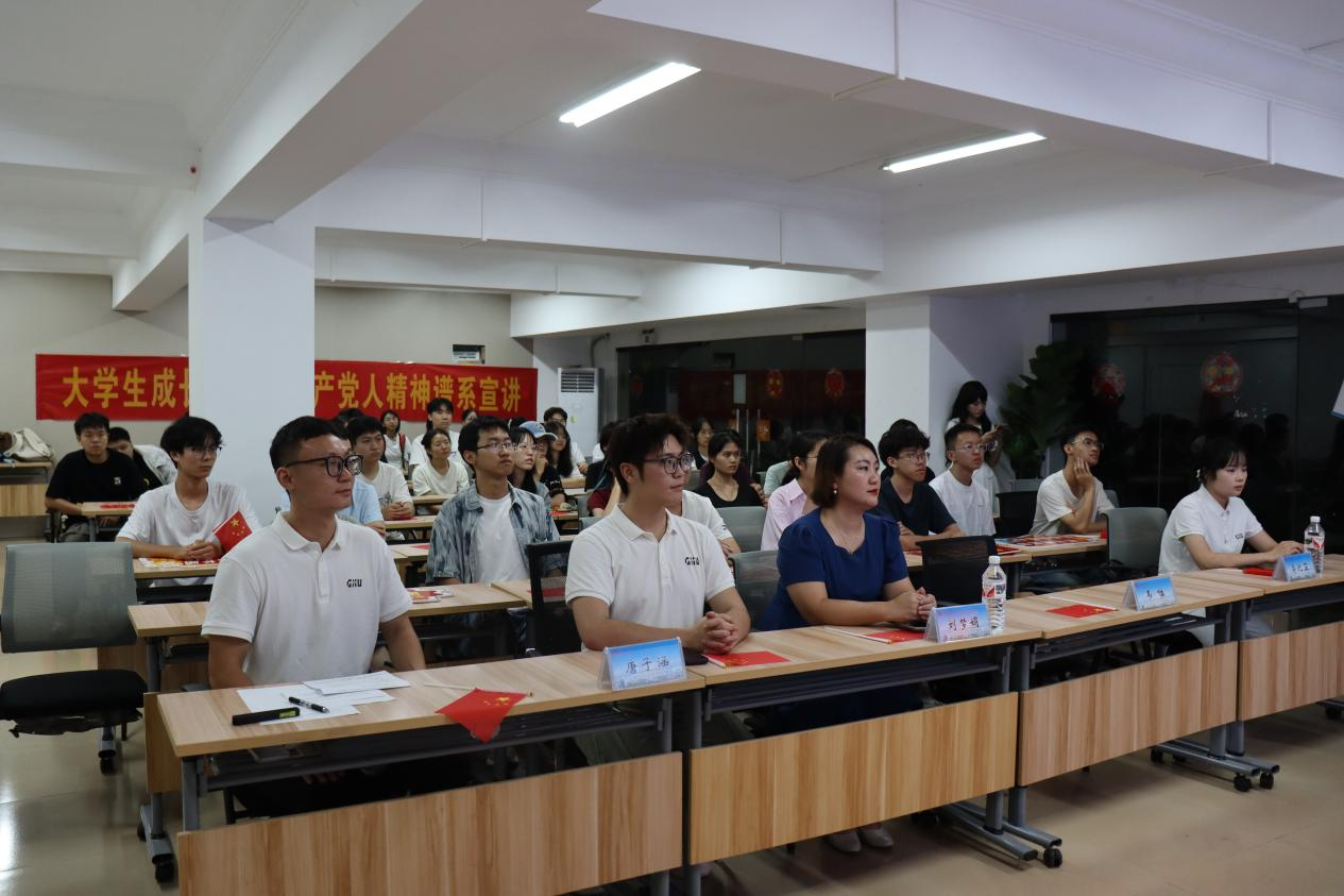 为深入学习宣传贯彻习近平新时代中国特色社会主义思想,10月10日,中国—东盟经济学院在西21栋“一站式”学生社区16号活动室开展第二期“大学生成长吧——共产党人精神谱系宣讲”活动,助力学子坚定理想信念、勇担青春使命。中国—东盟经济学院/经济学院/中国—东盟金融合作学院党委副书记刘梦娟老师、学生工作部(处)韦唯老师与学生代表50余人参与此次活动,活动由辅导员郭霖刚主持。