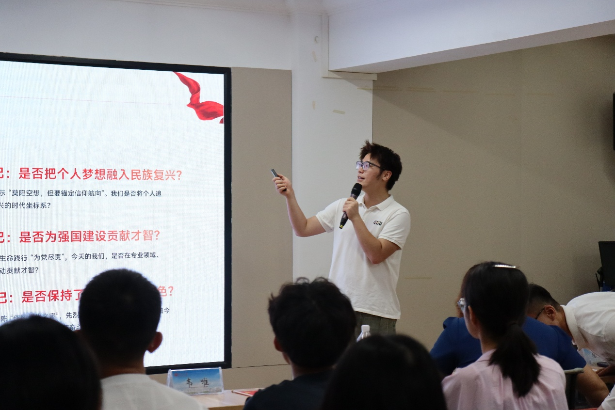 2024级硕士研究生李沅芷同学以“追寻红岩足迹,赓续精神血脉”为题发表演讲,阐释了团队赴重庆开展宣传教育活动的目的。她分享道,青年应将个人成就融入国家发展,具备创新精神和全球视野,同时做到知行合一,深刻理解红岩精神的当代意义。