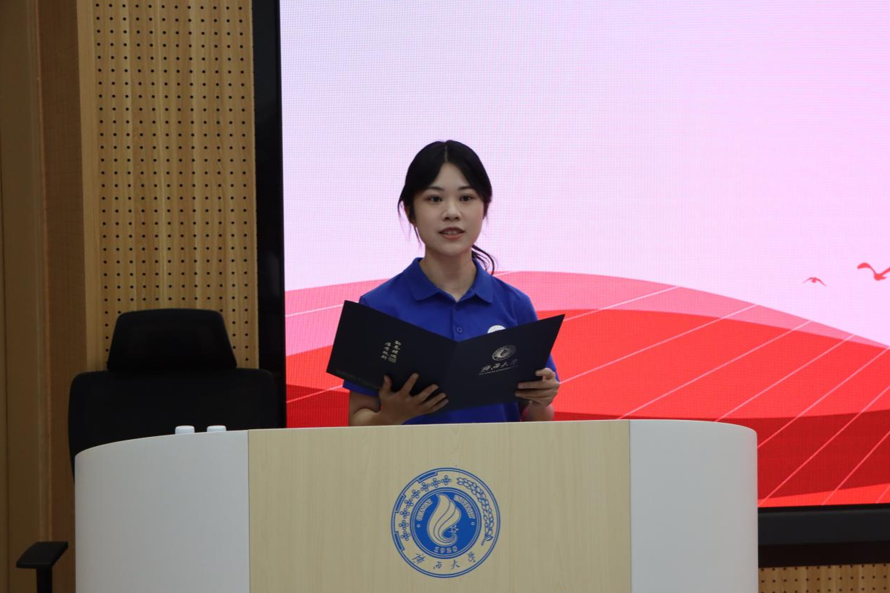 培训班学员代表黄嘉宁同学在发言中,深情回顾了纪念中国人民抗日战争暨世界反法西斯战争胜利80周年阅兵式的震撼场面,深刻阐述了对"党的领导是民族复兴的根本保证"的认识。她结合经济学院学子身份,表达了"经济报国"的理想信念,呼吁全体学员珍惜学习机会,以"勤恳朴诚"的态度学习党的理论,践行"厚学致新"的校训精神,将个人理想融入党的伟大事业。