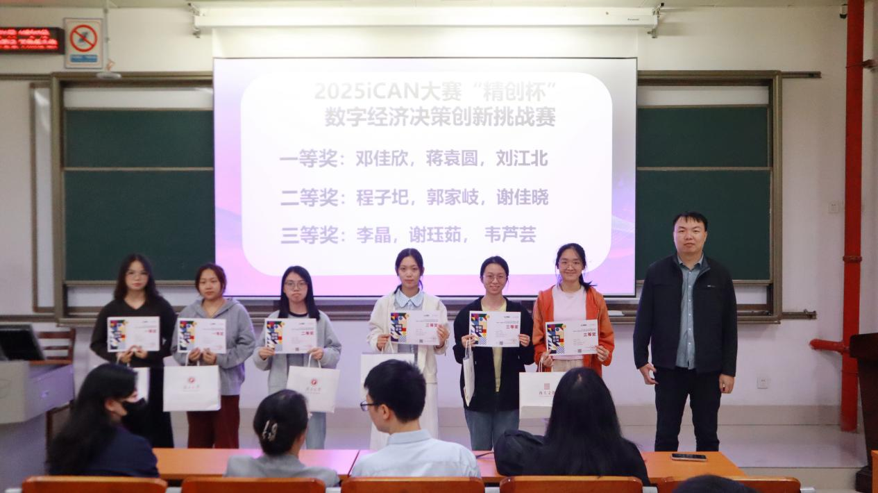 随后,举行表彰和颁奖仪式。学院对在“经济新星” 大赛、2025iCAN大赛“精创杯”数字经济决策创新挑战赛,以及2025全国高校经济决策虚拟仿真实验大赛中表现突出的同学进行了表彰,并颁发荣誉证书,以此充分肯定他们在学术创新与实践探索过程的努力与优异成果。其中,“经济新星”大赛为本专业举办的赛事,旨在提高同学们关注现实经济发展能力,增强实践和研究水平,分为课程案例、调查报告和学术论文三个赛道,至今已举办了第三届。