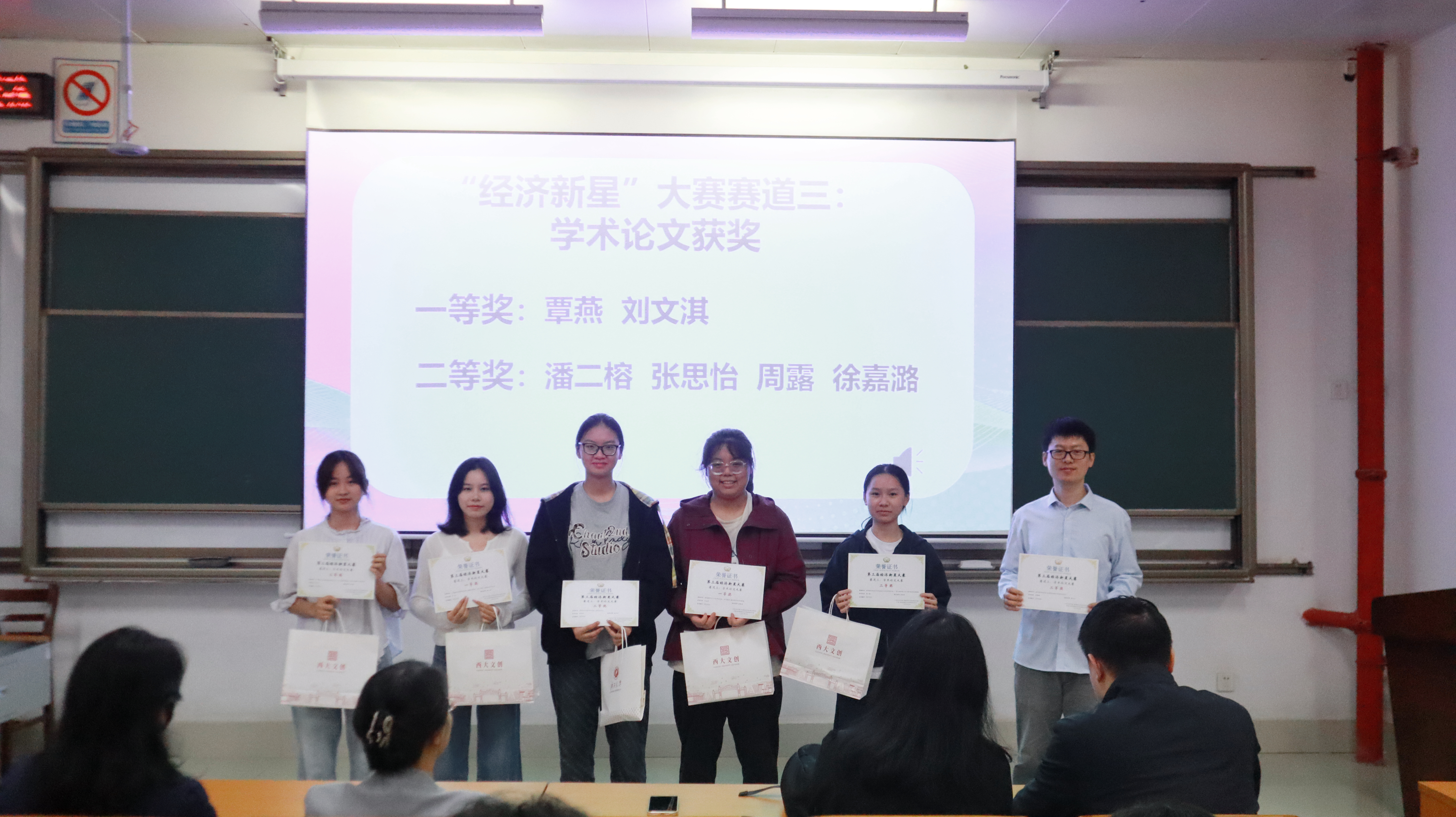 为进一步加强经济学专业不同年级同学之间的学习交流,表彰优秀学子,营造积极向上的学风院风,我院于2025年10月31日举办了“2025年度经济学专业跨年级交流大会暨第三届经济新星大赛颁奖仪式”。本次活动由经济学专业各年级联合主办,院长助理覃诚、经济学系主任郭南芸、彭晴、黄天宇、苗璐等经济学专业教师、指导老师及各年级经济学专业、创培班经济学方向的同学参与本次活动。
