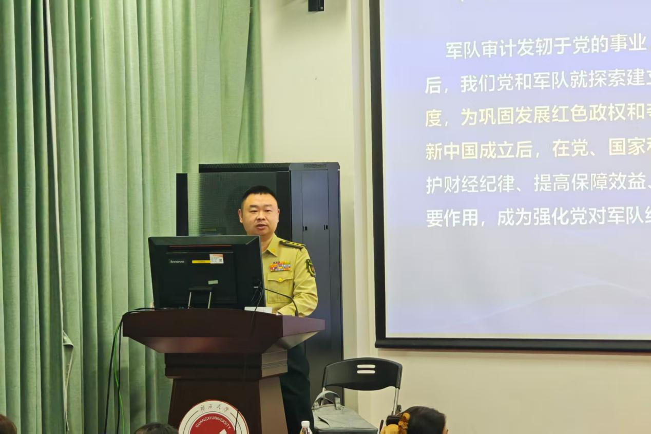 为积极响应新时代人才强军战略,服务国防和军队现代化建设,激发青年学子投身强军事业的报国热情,11月4日下午,中央军委审计署南宁审计中心一行来到我院,成功举办2026年面向地方高校招录文职人员宣讲会。此次活动不仅为同学们深入了解军队文职搭建了重要平台,更架起了一座连接个人理想与国家需要的桥梁。