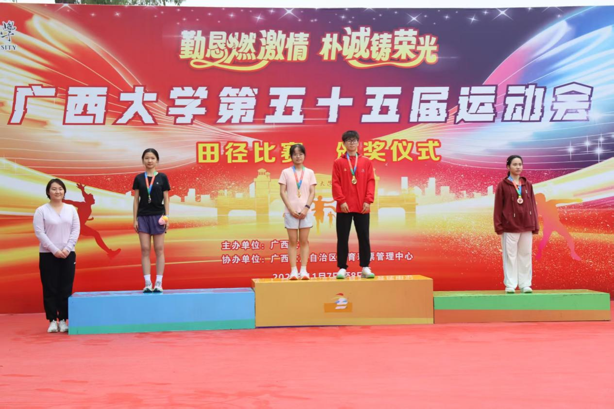 我院金融251班余燕1500米跑冠军领奖荣誉时刻