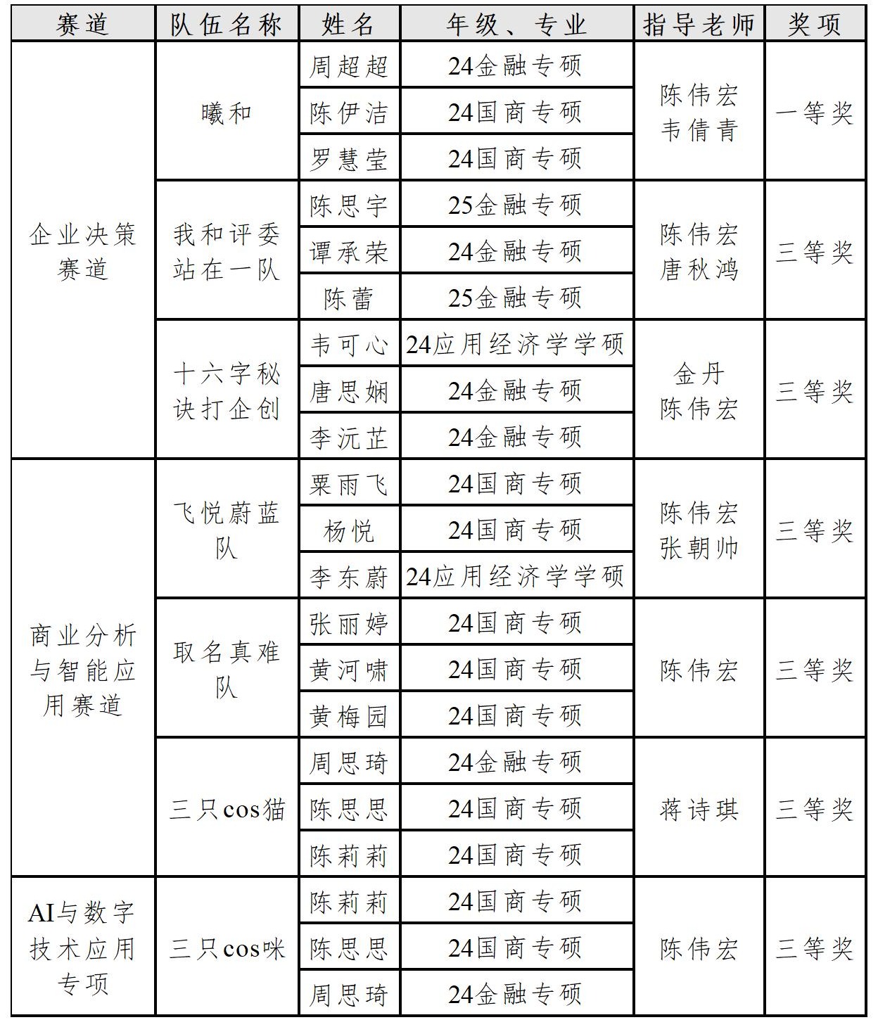 我院高度重视本次赛事,竞赛得到了广西大学本科教学内涵主要指标倍增计划、研究生素质能力提升类项目以及学院的大力支持。同学们通过参加比赛,提升了自己在数智时代的胜任力及管理实践创新能力。同时,我院也将以此为契机,助力新时代复合型商科人才培养,促进产教融合,继续加强研究生教育教学改革,持续提高办学质量和水平,努力培养具有创新思维和实践能力的综合型人才。