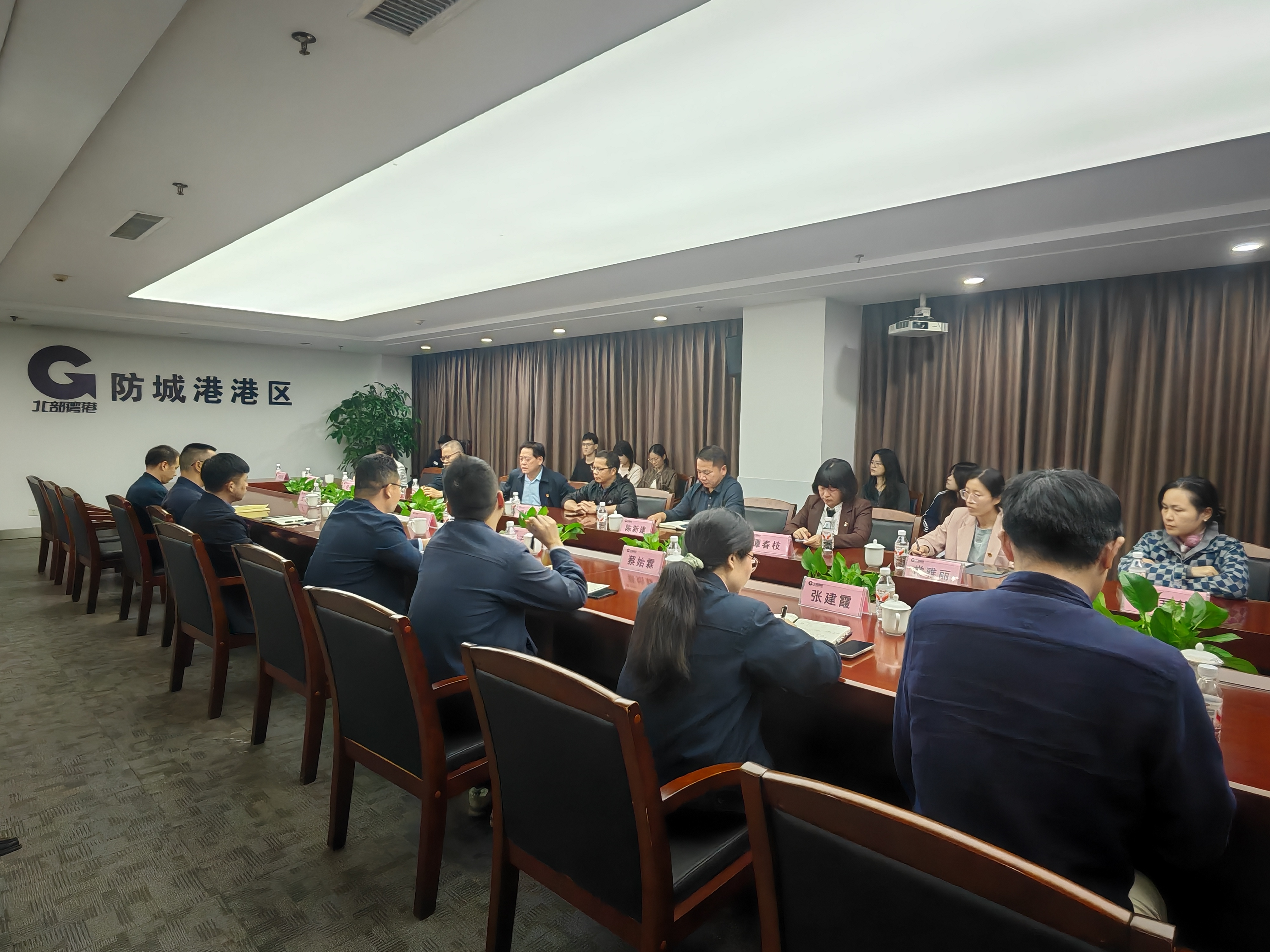 党员们第一站走进北港故里历史文化中心,在“322工程”的斑驳影像前、在亿吨大港的宏伟蓝图间,重温了从小渔村到四个千亿级产业集群崛起的峥嵘岁月。那句“以港为家、艰苦奋斗;团结协作、争创一流”的建港誓言,不再是纸面上的标语,而是化作可触可感的奋斗足音,叩击着每位党员的心扉。随后,支部深入防城港码头作业区,实地观摩大宗散货的铁港联运,了解边海国际通道建设如何打通双循环的“任督二脉”。海风凛冽,却吹不散大家眼中升腾的热切——这不仅是港口的物理格局,更是新发展格局下中国经济的战略纵深。