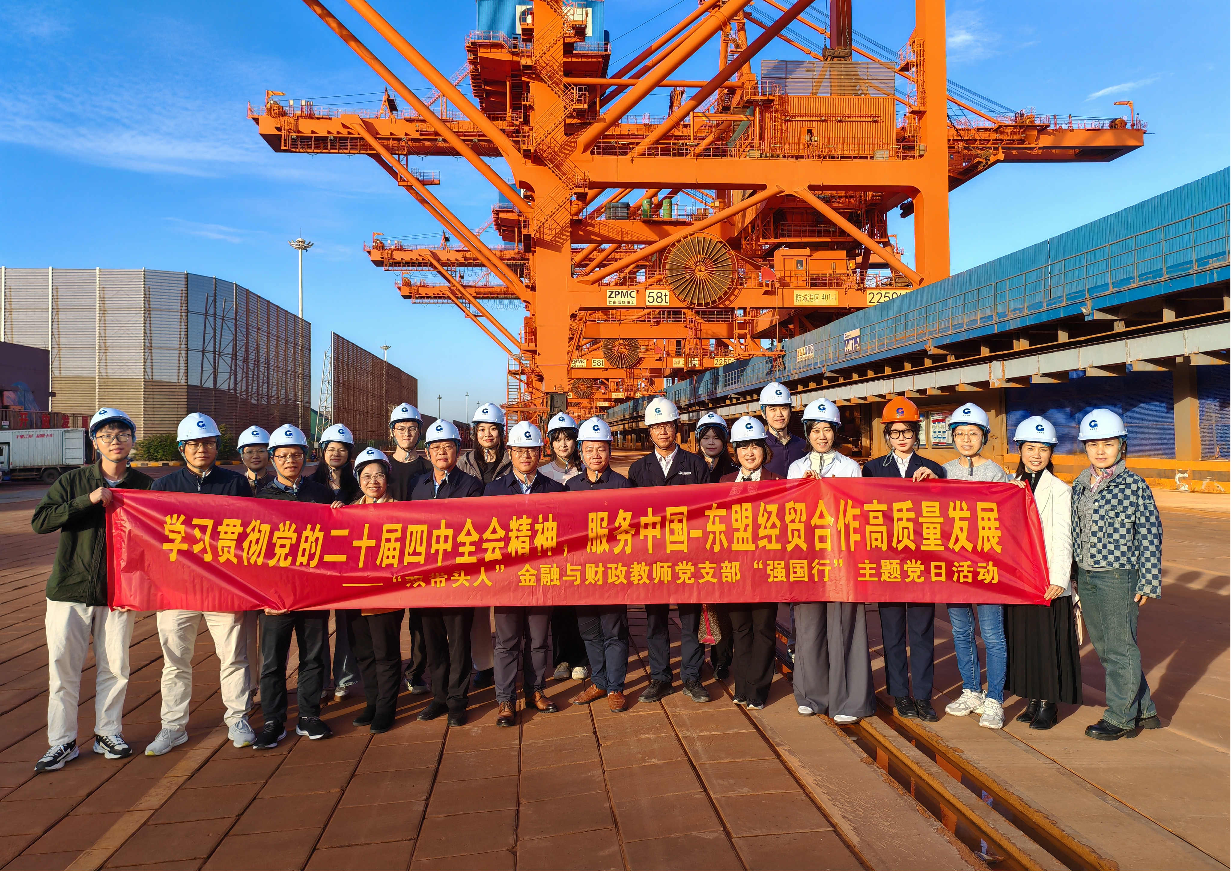 为深入学习贯彻党的二十届四中全会精神,推动“一融双高”落地生根,2025年11月21日至22日,学院“双带头人”金融与财政教师党支部赴防城港市,与北部湾防城港码头公司、北港油脂公司等企业联合开展“强国行”主题党日活动,在港口发展一线感悟思想伟力,于向海图强实践中砥砺育人担当。