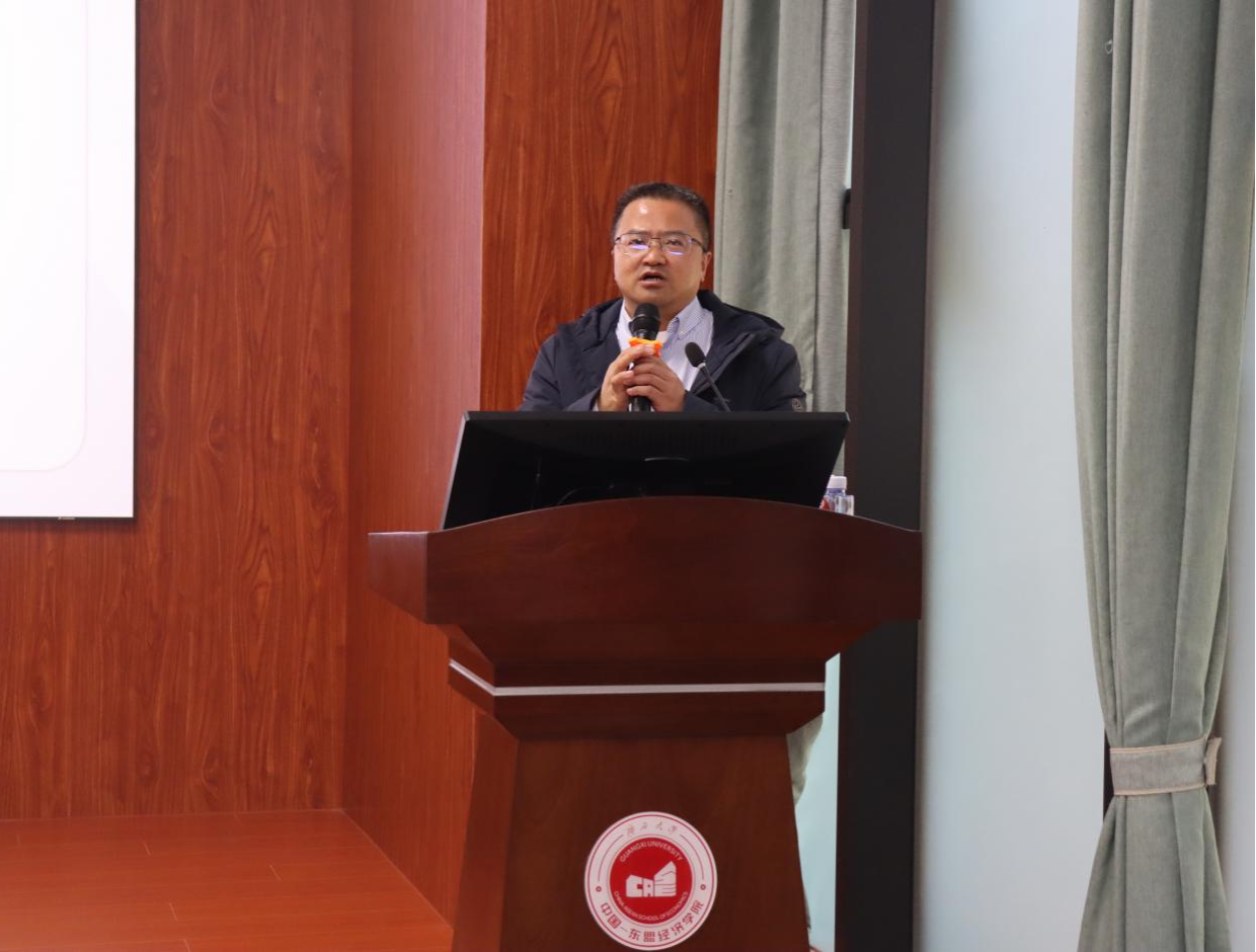 2025年11月24日下午,广西大学经济学院B101报告厅内座无虚席,“中国边疆经济名家大讲堂”如期开讲。本次讲座邀请到昆明市社会科学院研究员、产业经济研究所所长尹峻,围绕“边疆跨境金融崛起——动力与路径的观察”这一前沿课题展开分享。讲座由学院副院长梁权熙主持,学院九十余名师生参与。