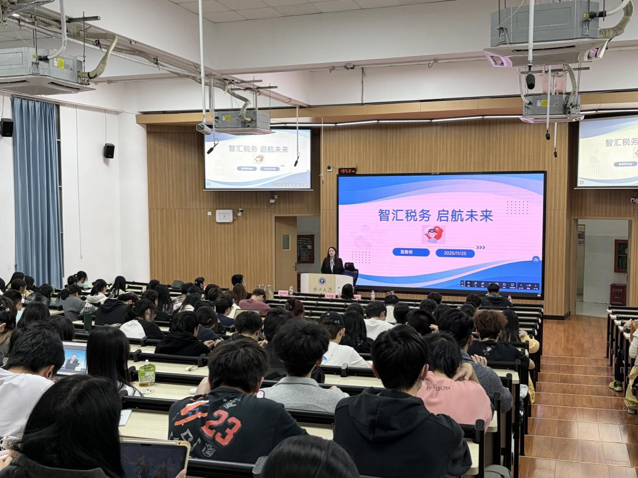 在热烈的掌声中,主讲嘉宾童嘉俐为师生们带来了“智汇税务 启航未来”的精彩讲座。“过去的税务工作离不开算盘和账本,而今天,我们的核心工具是数据和算法。”童嘉俐以生动的今昔对比开场,迅速将同学们带入“以数治税”的新阶段。她指出,税务工作正经历从靠人算向云智算的变革。