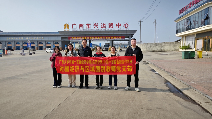 为深入学习贯彻党的二十届四中全会精神和党中央关于边疆治理的重要部署,深化“兴边富民”行动内涵,2025年12月6日,广西大学中国-东盟经济学院边疆经济与区域国别教师党支部全体党员前往中越边境重镇东兴口岸,开展以“党建领航深耕边疆经济、凝心聚力共促兴边富民”为主题的实地调研与实践赋能党日活动。此次活动坚持将理论研究与国门一线实践相结合,聚焦口岸通关运行、边民互市贸易机制及边境治理实践,推动党建与学科建设同频共振。