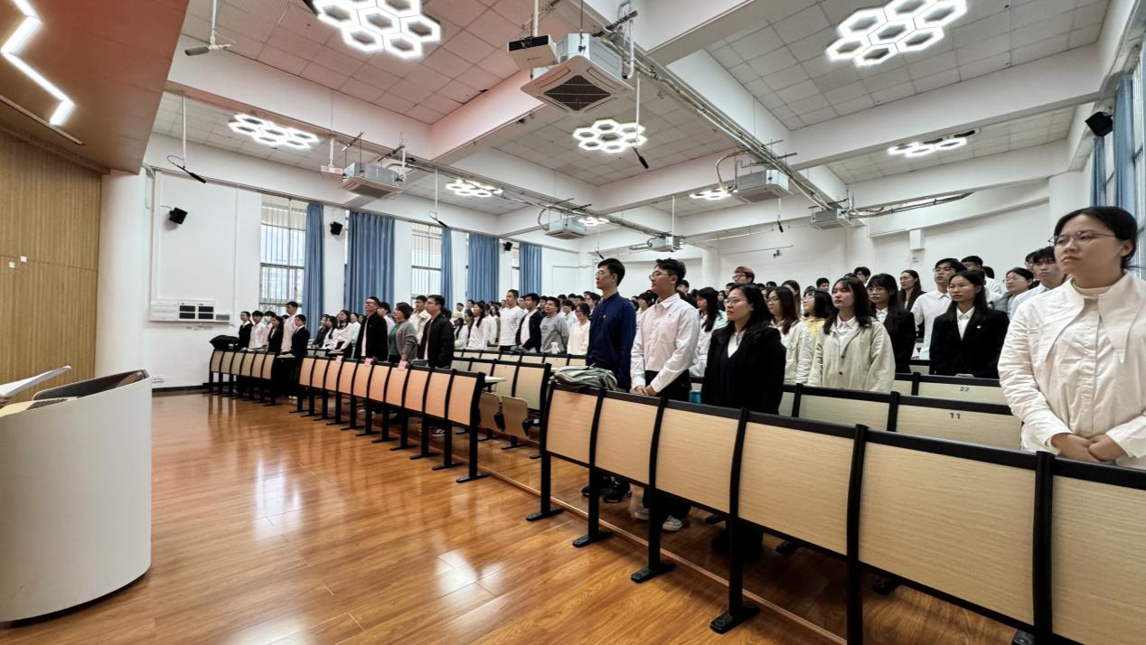 一场庄严肃穆的仪式在《国际歌》雄壮激昂、振奋人心的旋律声中缓缓地拉开了帷幕。全体人员起立,齐声高唱,激昂的歌声在会场内回响,气氛庄重。