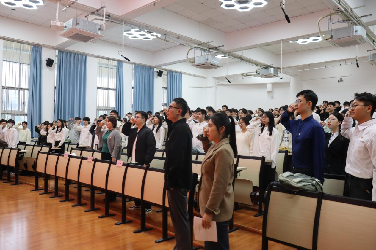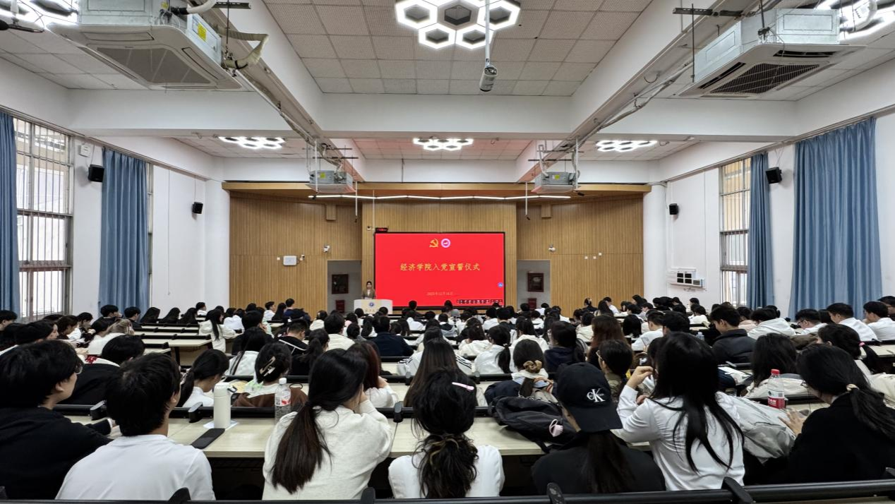 2025年12月16日,广西大学中国—东盟经济学院/经济学院/中国—东盟金融合作学院在庄严的党旗下,隆重举行2025年新党员入党宣誓仪式。学院党委副书记刘梦娟出席仪式,全体新党员及部分师生党员代表共同见证了这一庄严而光荣的时刻,仪式由陈伊洁主持。