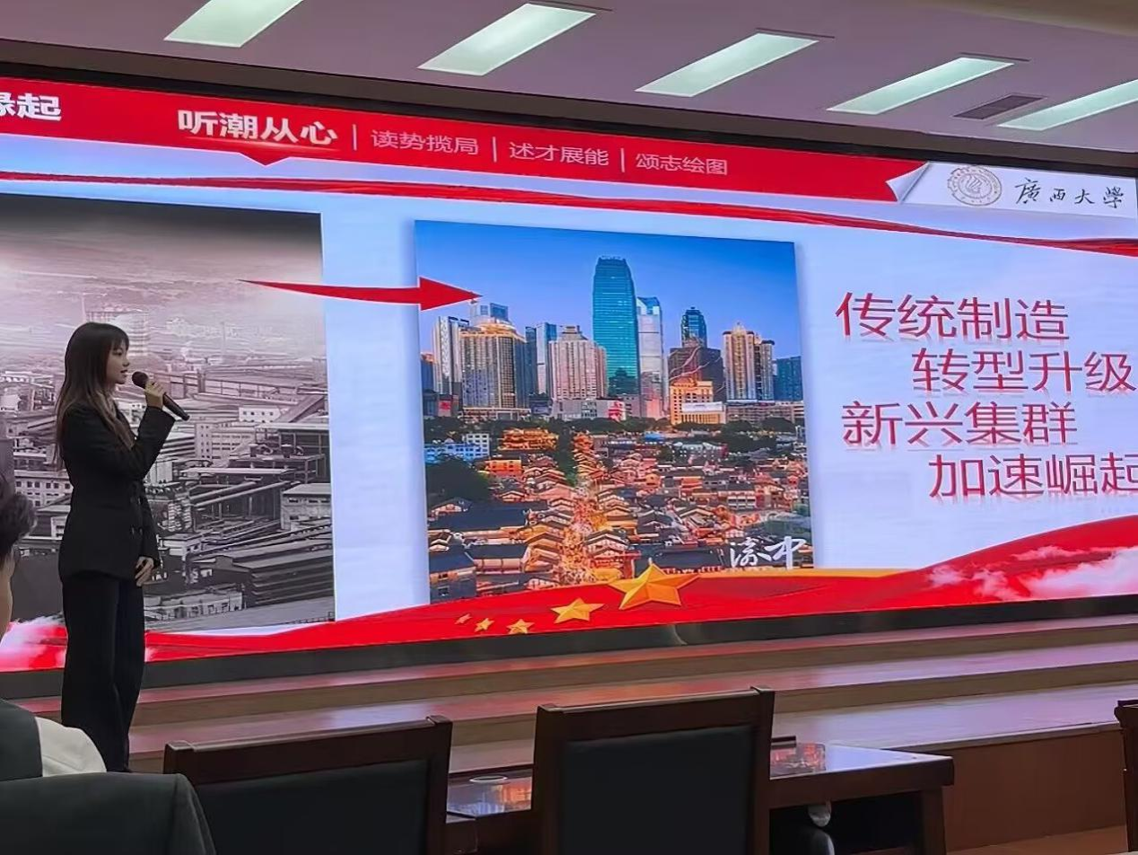 近日,广西大学职业规划大赛圆满收官,经济学院学子在大赛中斩获佳绩。金融学2023级本科生王紫菡荣获校级金奖,国际经济与贸易2023级本科生柯贤婷、国际商务专业2024级硕士研究生陈莉莉荣获校级银奖。当“我想做”的炽热理想与"我能做"的系统规划相碰撞,让我们一起探寻她们背后的成长密码。