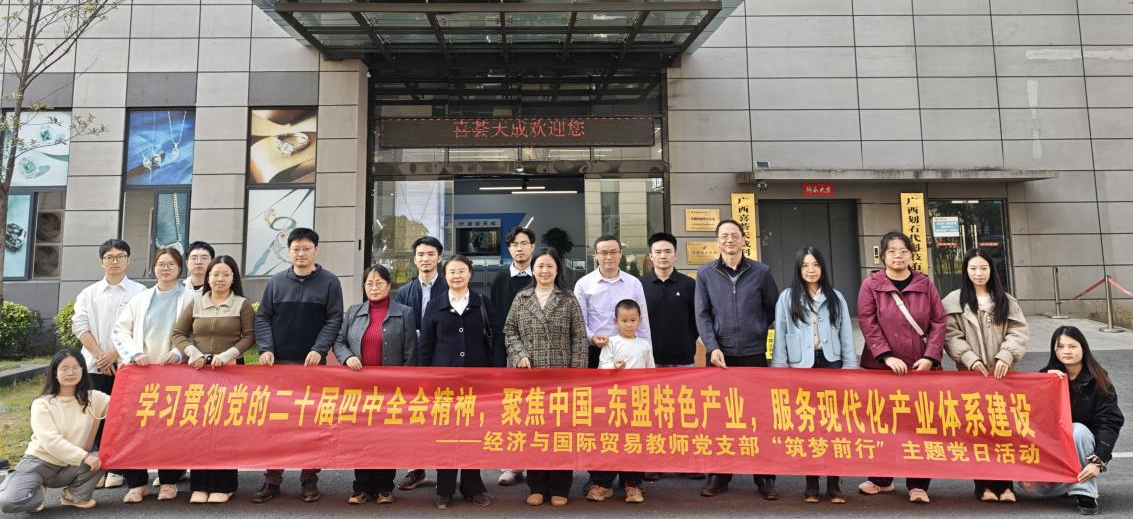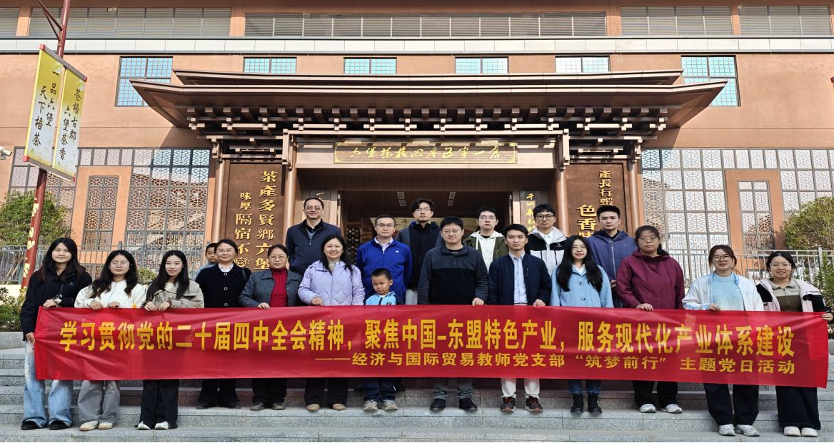 为深入学习贯彻党的二十届四中全会精神,推动党建与业务工作深度融合,积极服务国家重大战略和地方经济社会发展,2025年12月5日至6日,广西大学经济学院经济与国际贸易教师党支部组织党员教师,赴广西梧州市及苍梧县六堡镇,开展了一场内容丰富、主题鲜明、实践性强的主题党日活动。