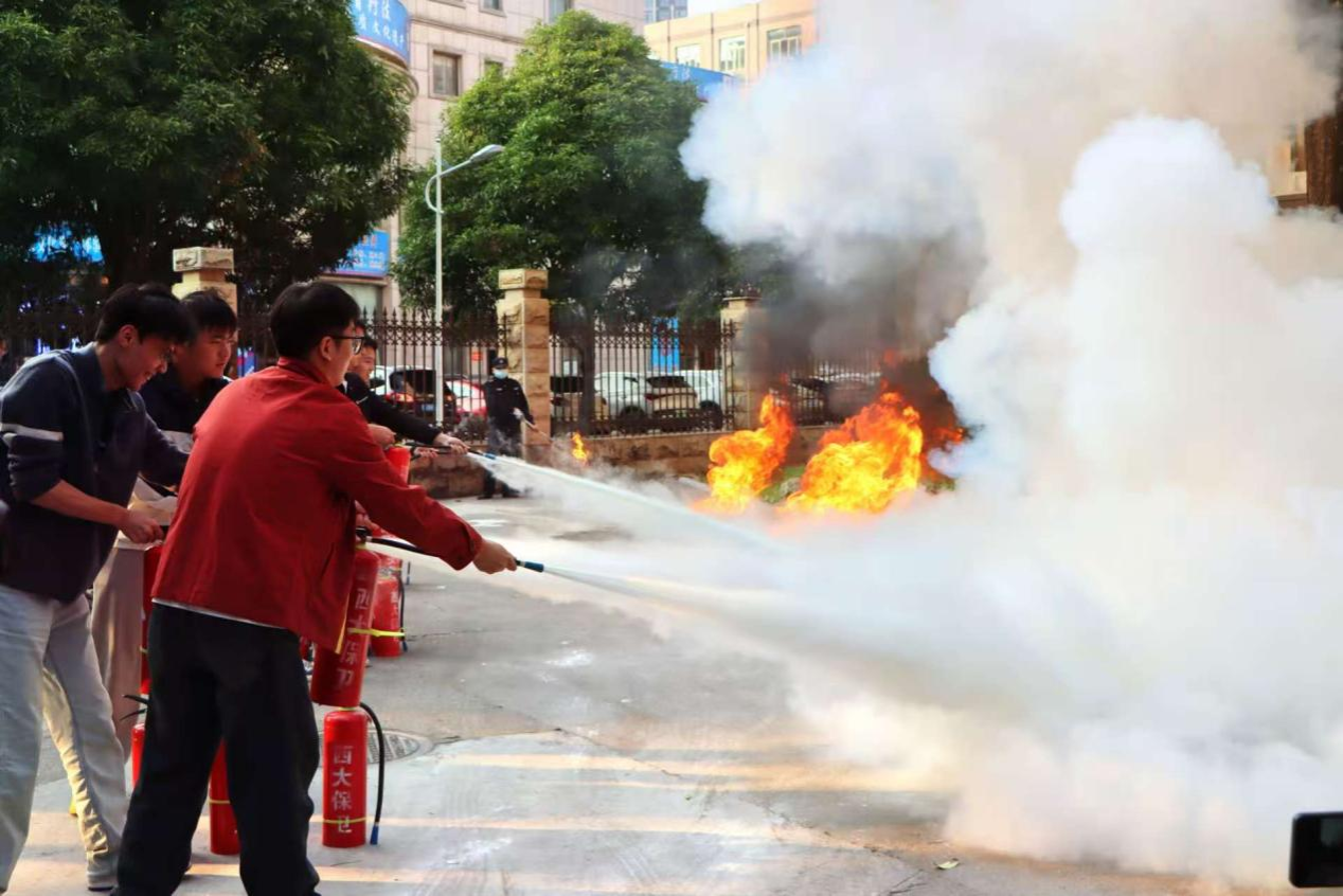 最后开展灭火实操演练。在指定安全区域,面对燃烧的火盆,师生代表分批上前,按照所学步骤,手持灭火器成功扑灭火源。通过亲身实践,师生对消防器材的使用方法和初期火灾扑救技巧有了更为直观的认识和体会。