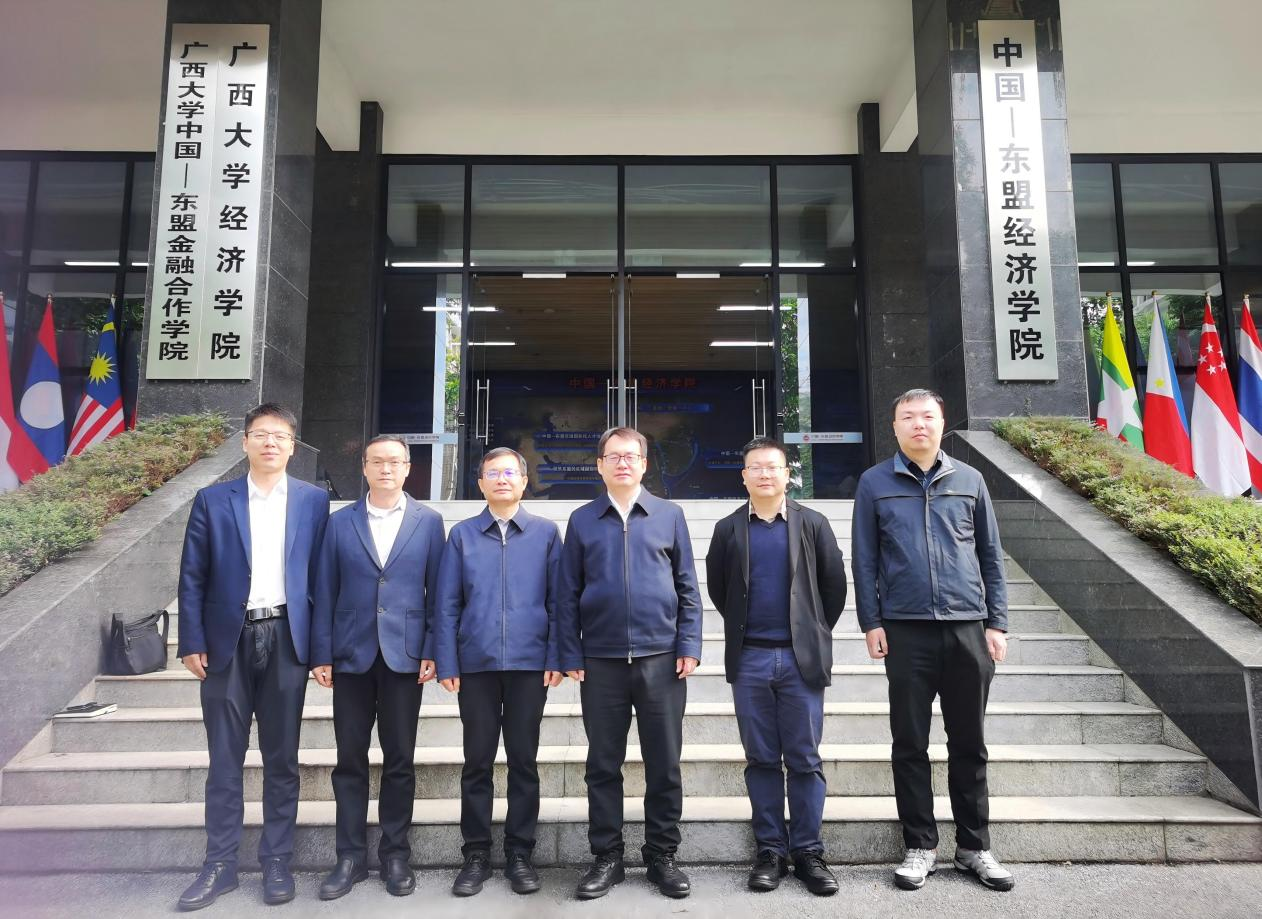 梁运文院长对洪俊杰校长一行的到访表示热烈欢迎,并详细介绍了广西大学中国—东盟经济学院、中国—东盟研究院的总体发展历程以及学院运行机制。他重点阐述了学院在服务国家“一带一路”、西部陆海新通道战略部署和中国—东盟命运共同体建设中的定位,分享了学院在学科整体规划、特色方向凝练、创新型人才培养模式探索,以及科研平台建设、重要学术成果等方面的实践与经验。