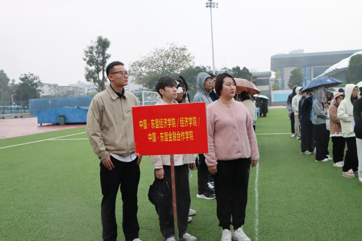 田径场上,我院师生代表身着整齐服装,以抖擞的精神、昂扬的姿态列队集合。清晨的细雨突如其来,却丝毫没有冲淡大家的热情,师生们神情庄重肃穆,目光炽热坚定,静静伫立在雨幕中,等候这一神圣时刻的到来。静默肃立间,饱含着对过往一年的总结回望,更寄托着对新年的美好期许,风雨无阻的坚守里,是全体师生对祖国最深沉的祝福与最崇高的敬仰。
