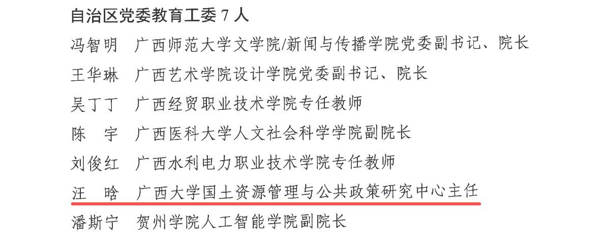 近日,广西壮族自治区妇女联合会发布《关于表彰2026年广西三八红旗手标兵、广西三八红旗手、广西三八红旗集体的决定》,广西大学经济学院汪晗教授被授予“广西三八红旗手”荣誉称号。