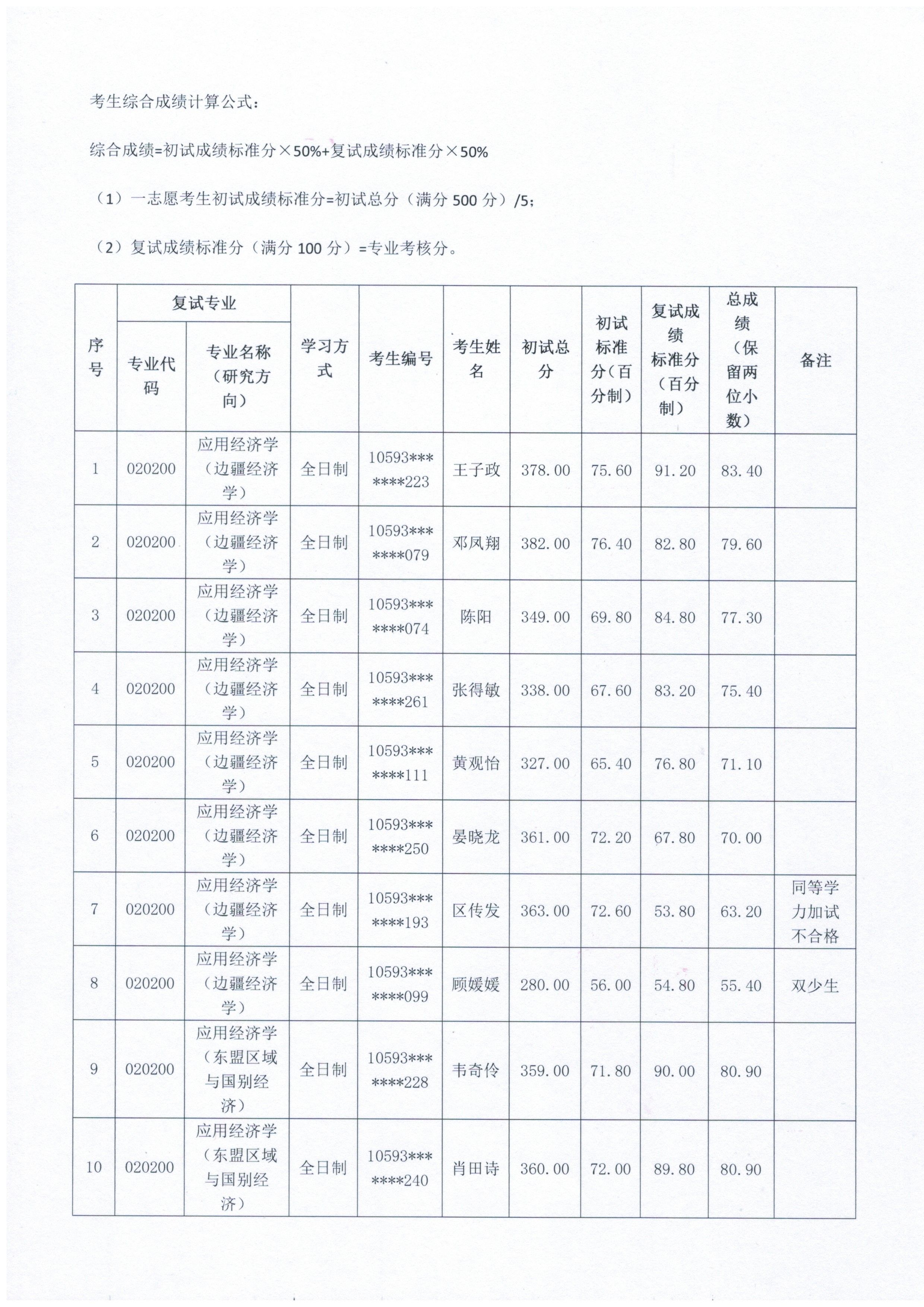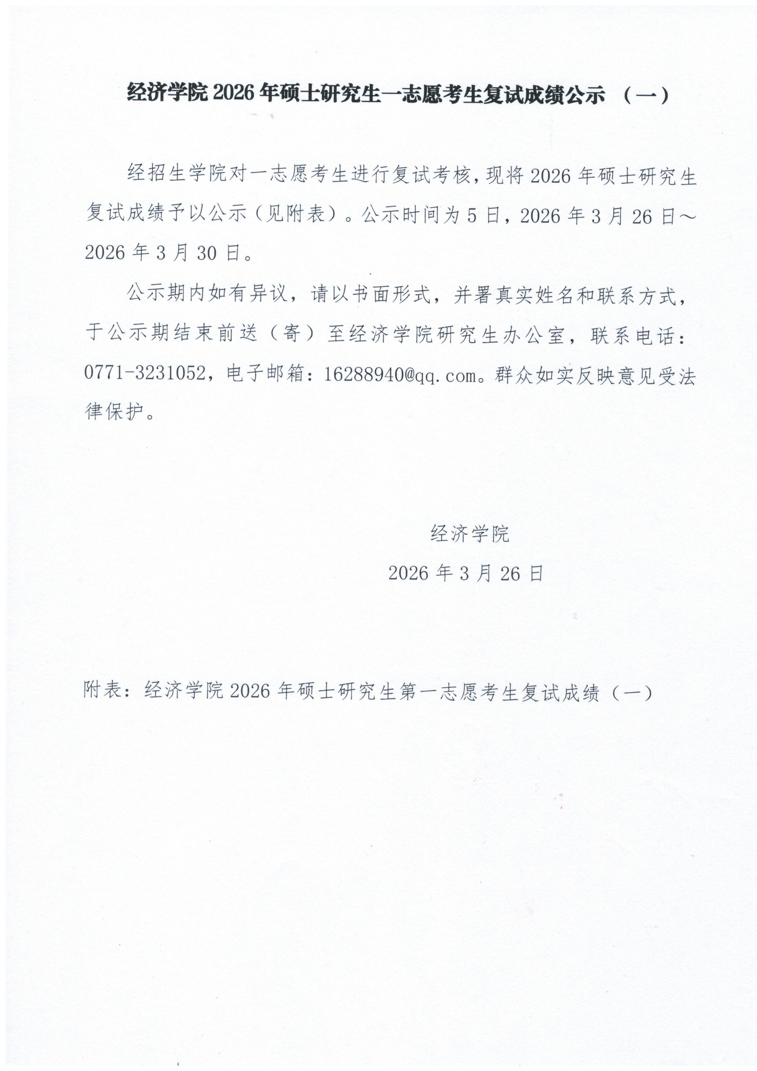 经济学院2026年硕士研究生一志愿考生复试成绩公示 (一)