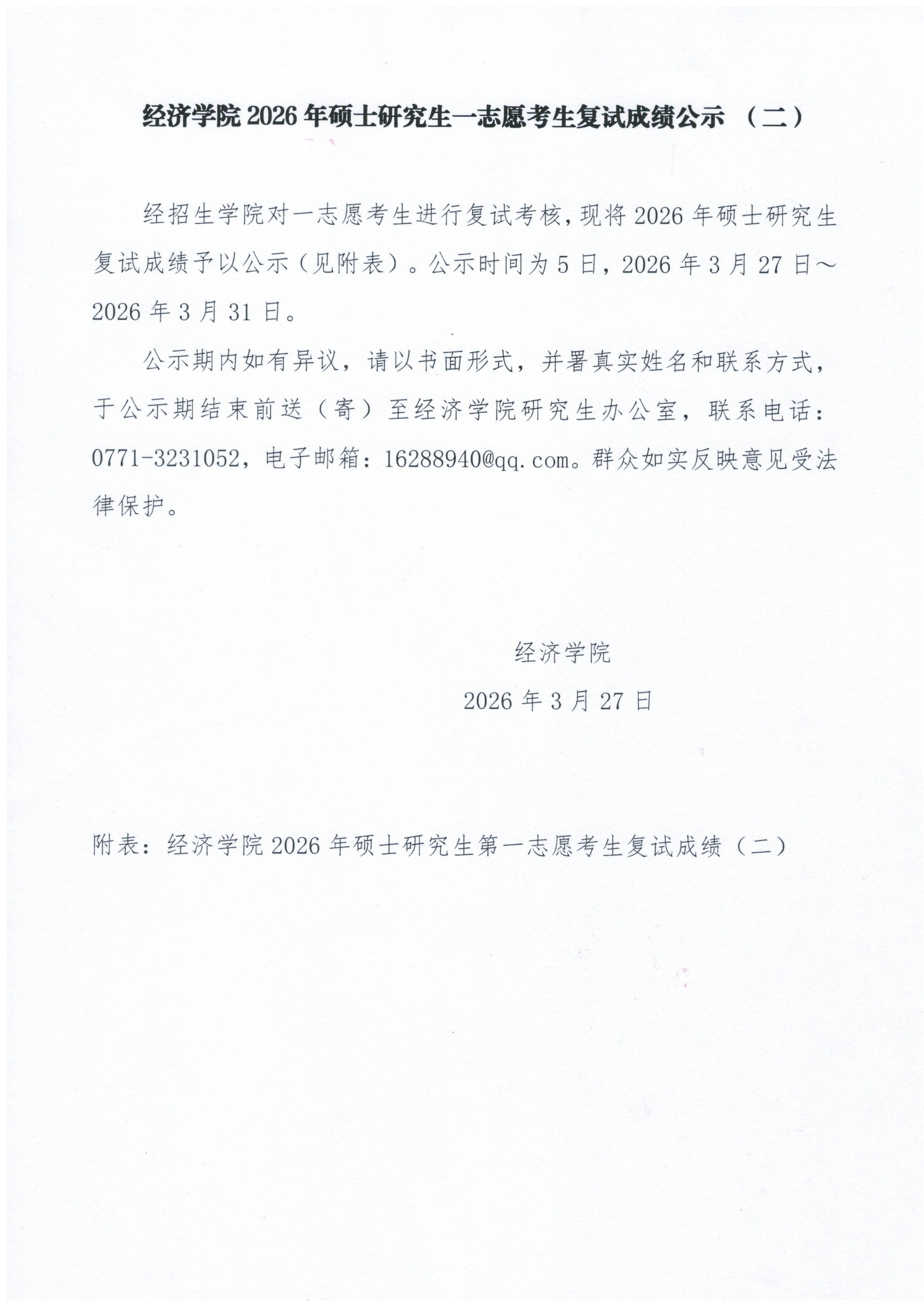 经济学院2026年硕士研究生一志愿考生复试成绩公示 (二)
