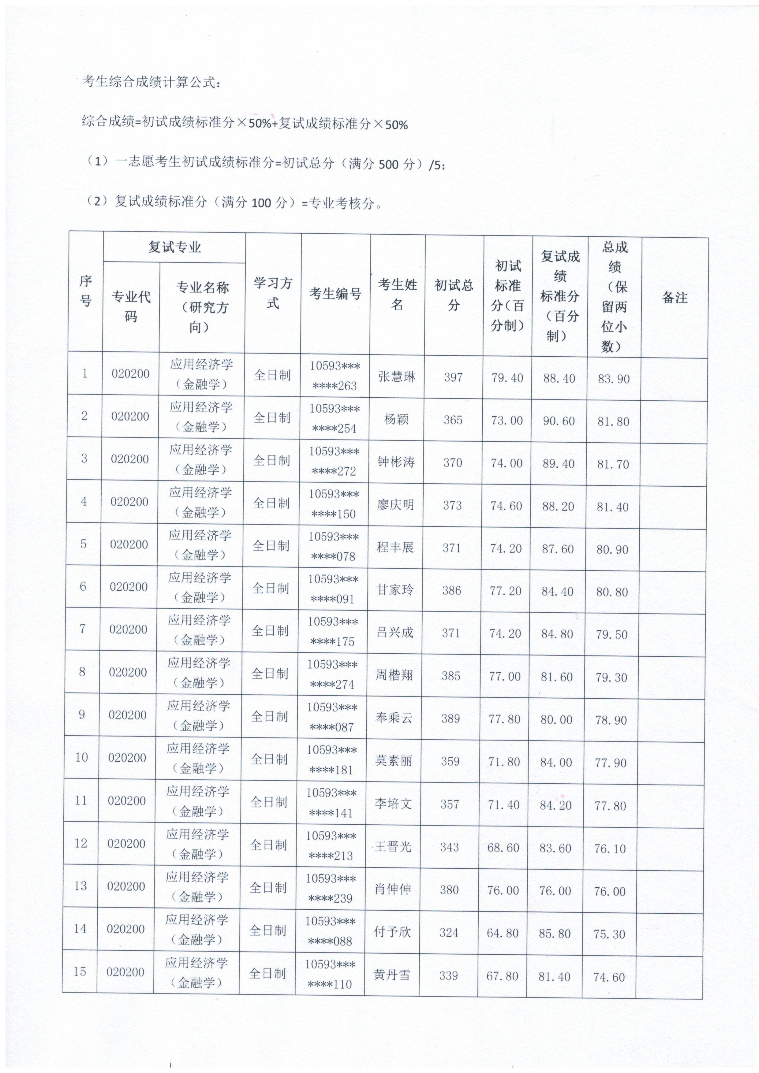 经济学院2026年硕士研究生一志愿考生复试成绩公示 (一)
