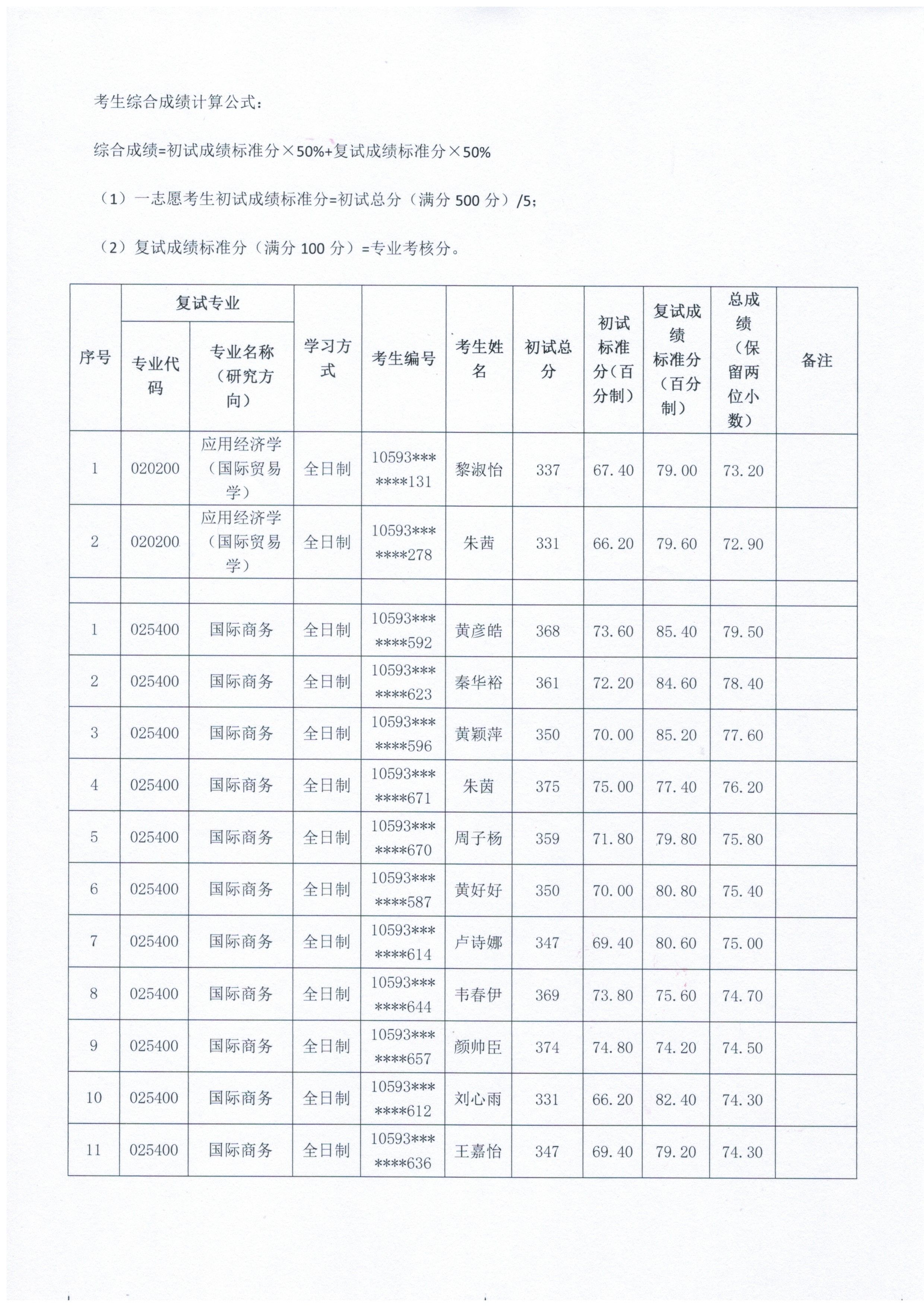 经济学院2026年硕士研究生一志愿考生复试成绩公示(五)